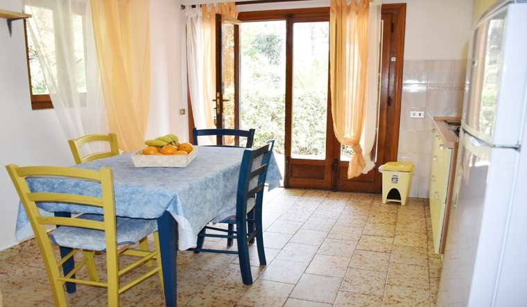 Independent villa located on the ground floor and inserted in a larger property where there is another house. The structure consists of kitchen, double bedroom, twin bedroom, bathroom with shower. Equipped with TV, large shaded terrace equipped with table and chairs, barbecue, parking space and the possibility of using the washing machine. Pets allowed (on request). Bed linen, towels and kitchen linen are not included.