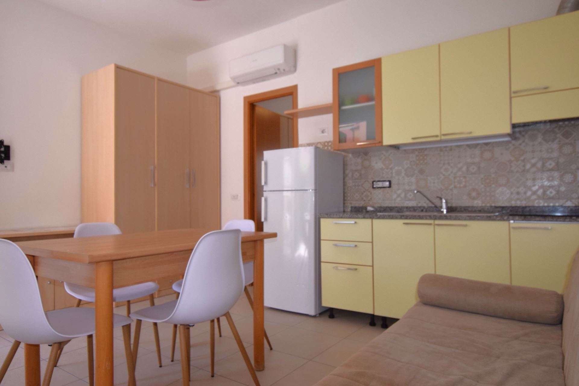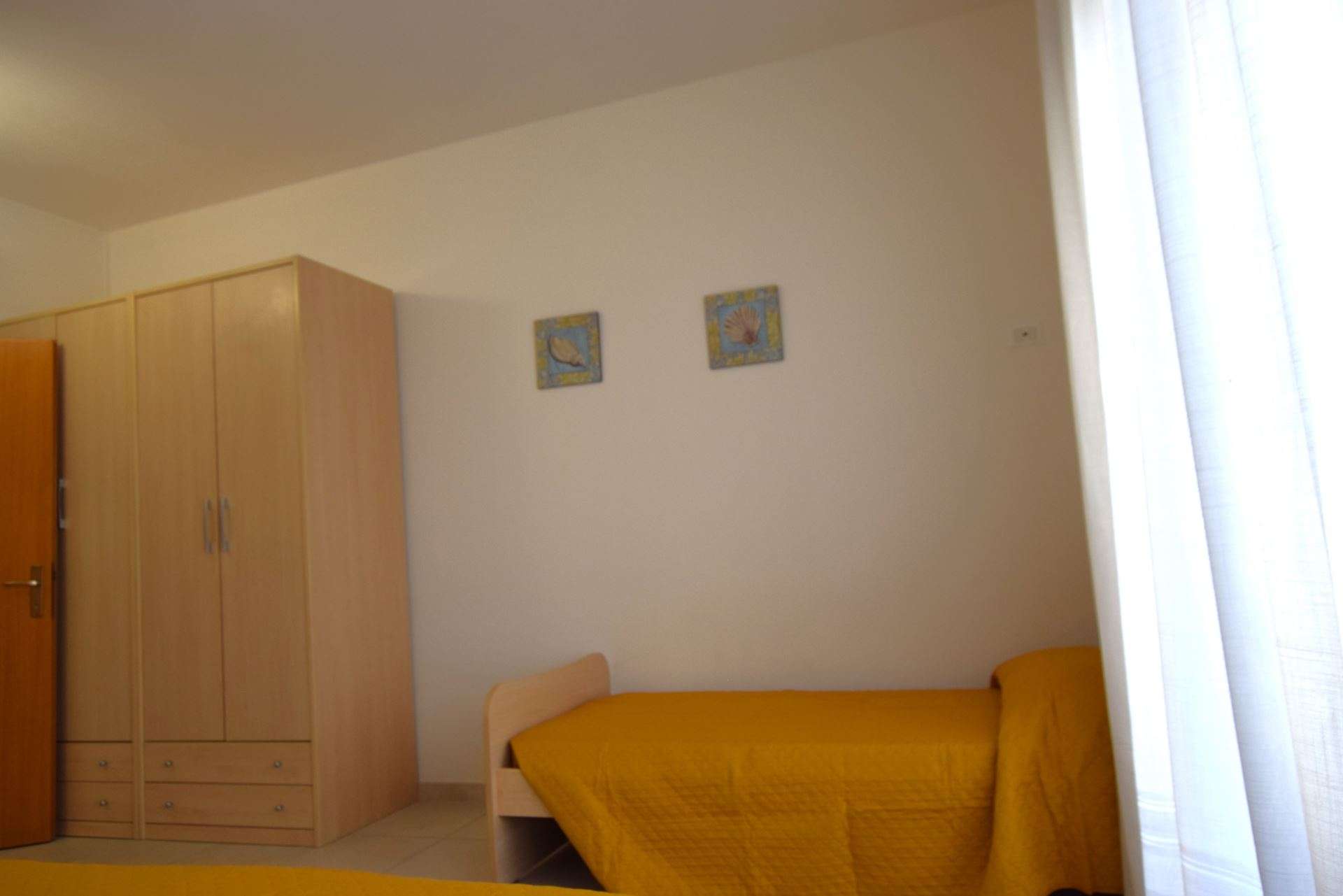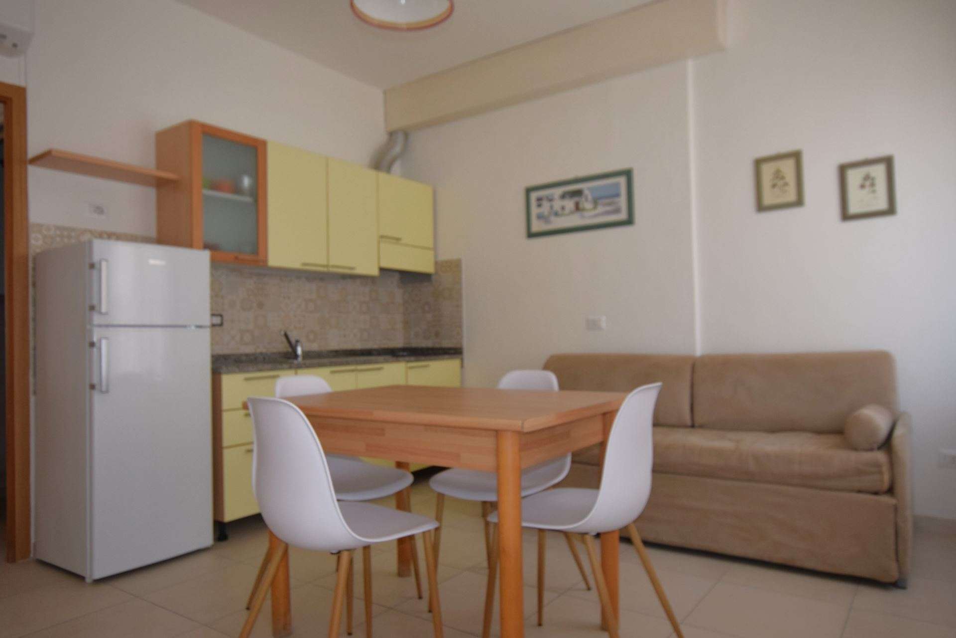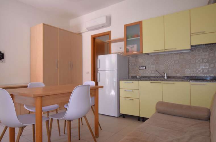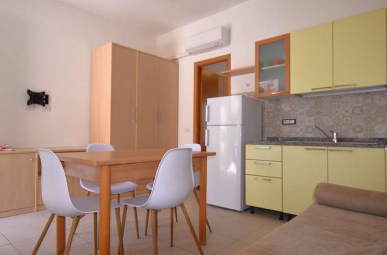 Ground floor apartment, consisting of living room with kitchenette and double sofa bed (twin beds), double bedroom and single bed, bathroom with shower. It has TV, air conditioning, outdoor area equipped with table and chairs, reserved parking space about 300 meters away. The apartment is within the limited traffic area which can be accessed only on the day of arrival and departure. Pets allowed (small size with supplement). Bed linen and towels not included.