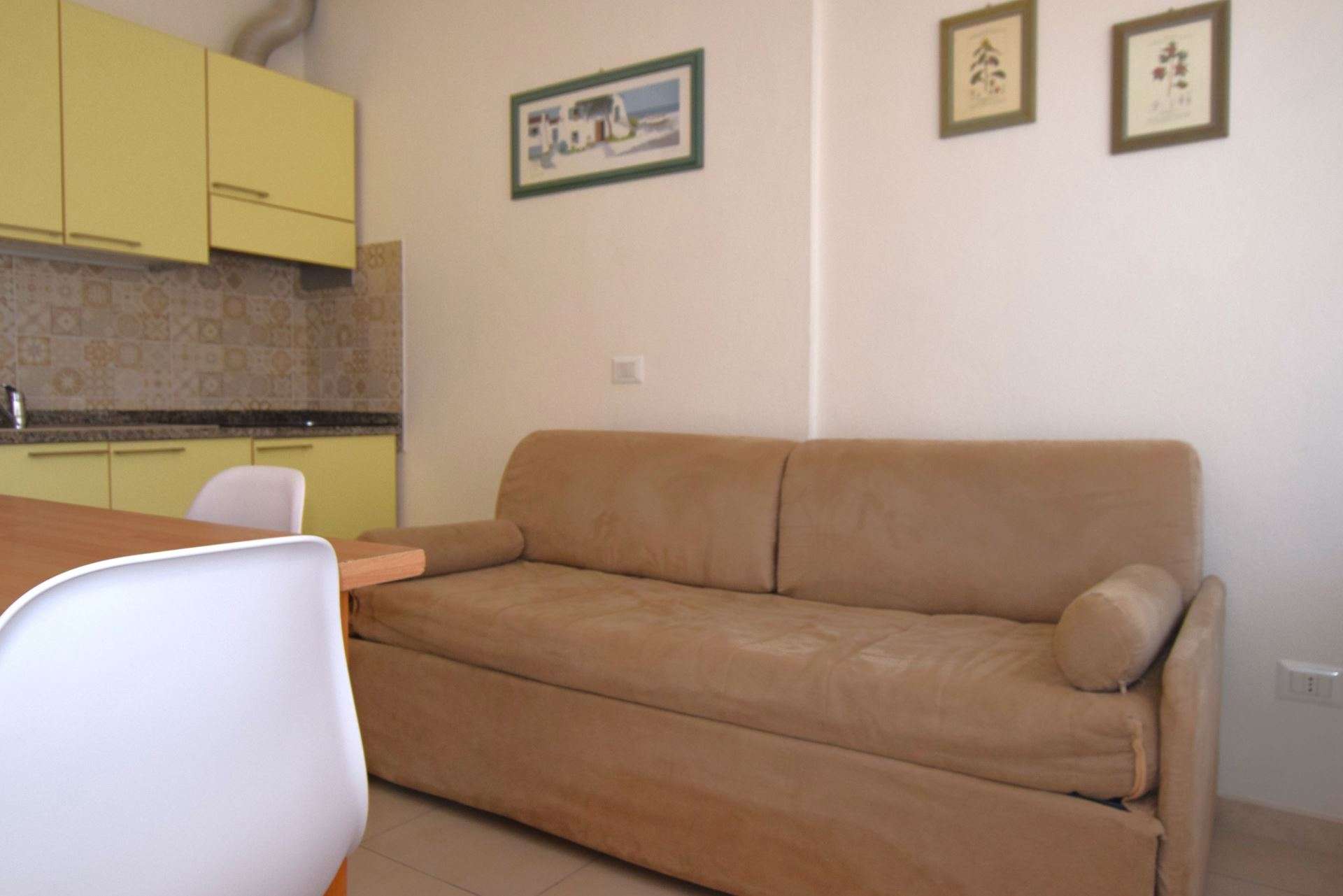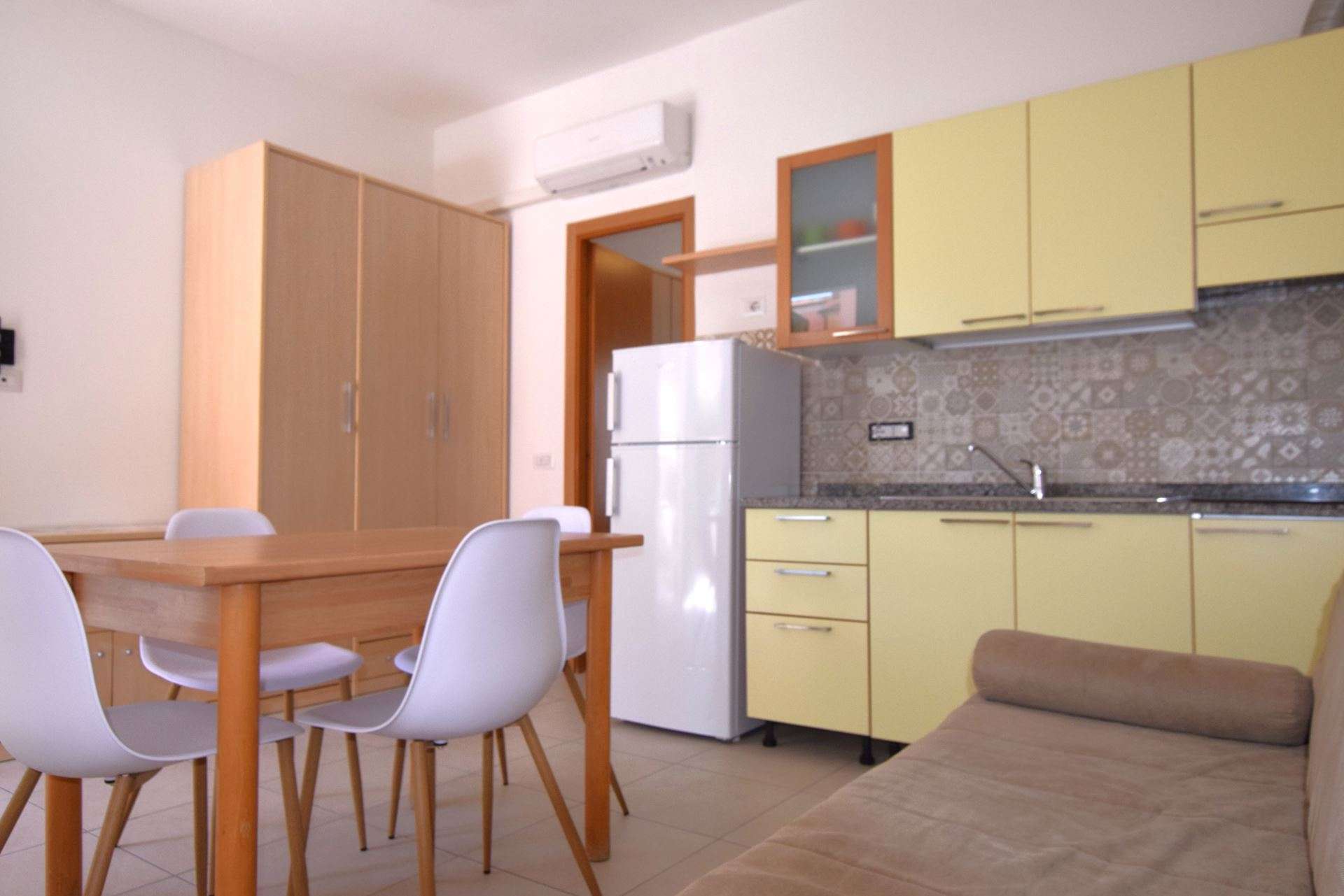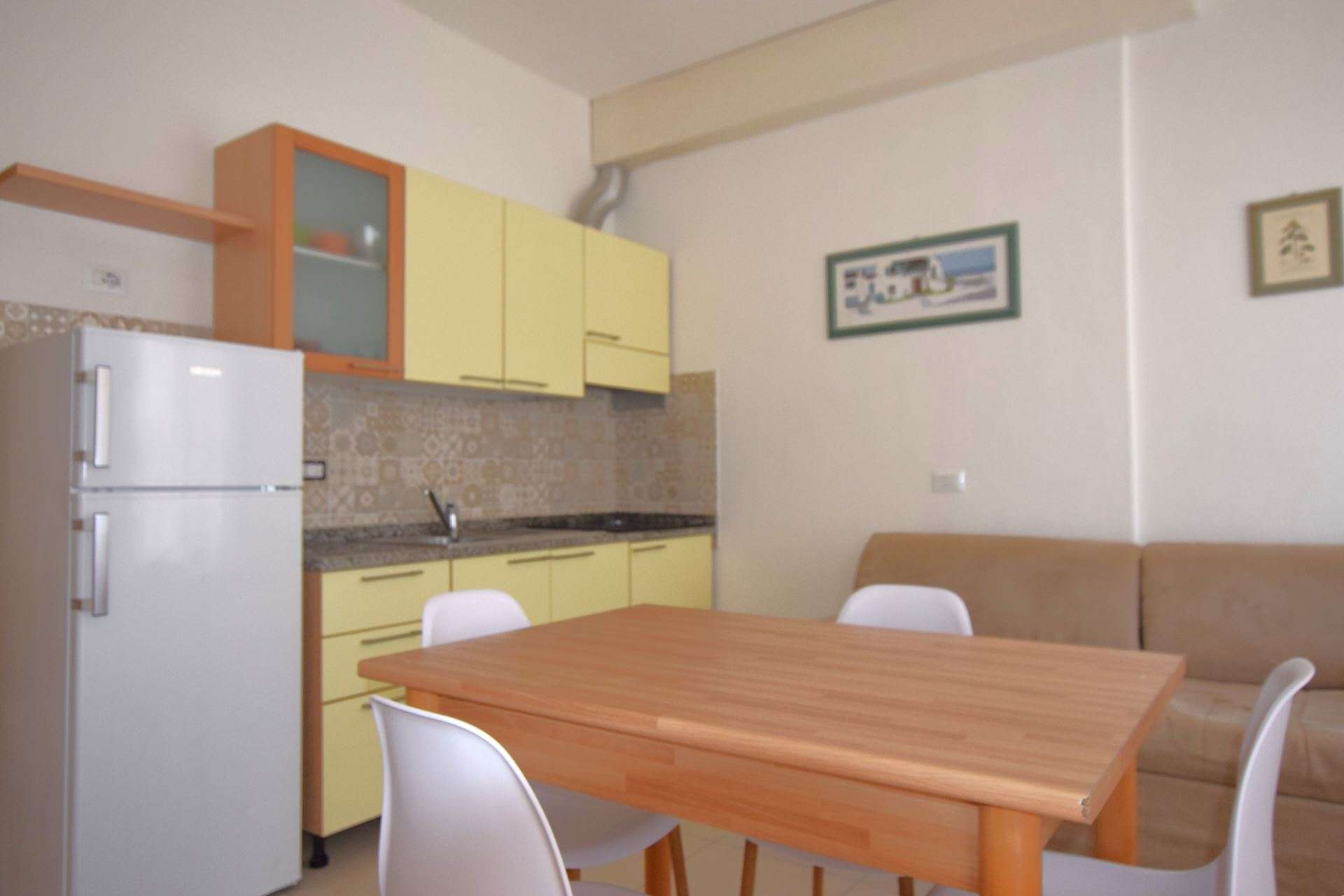 Ground floor apartment, consisting of living room with kitchenette and double sofa bed (twin beds), double bedroom and single bed, bathroom with shower. It has TV, air conditioning, outdoor area equipped with table and chairs, reserved parking space about 300 meters away. The apartment is within the limited traffic area which can be accessed only on the day of arrival and departure. Pets allowed (small size with supplement). Bed linen and towels not included.