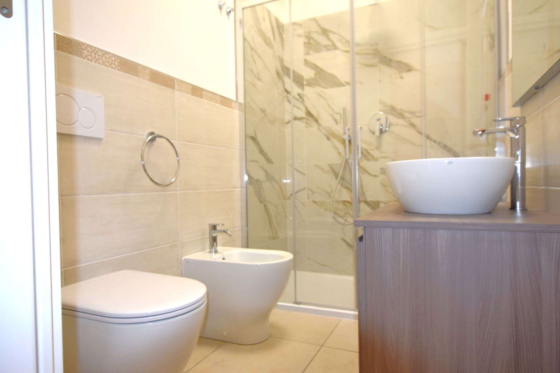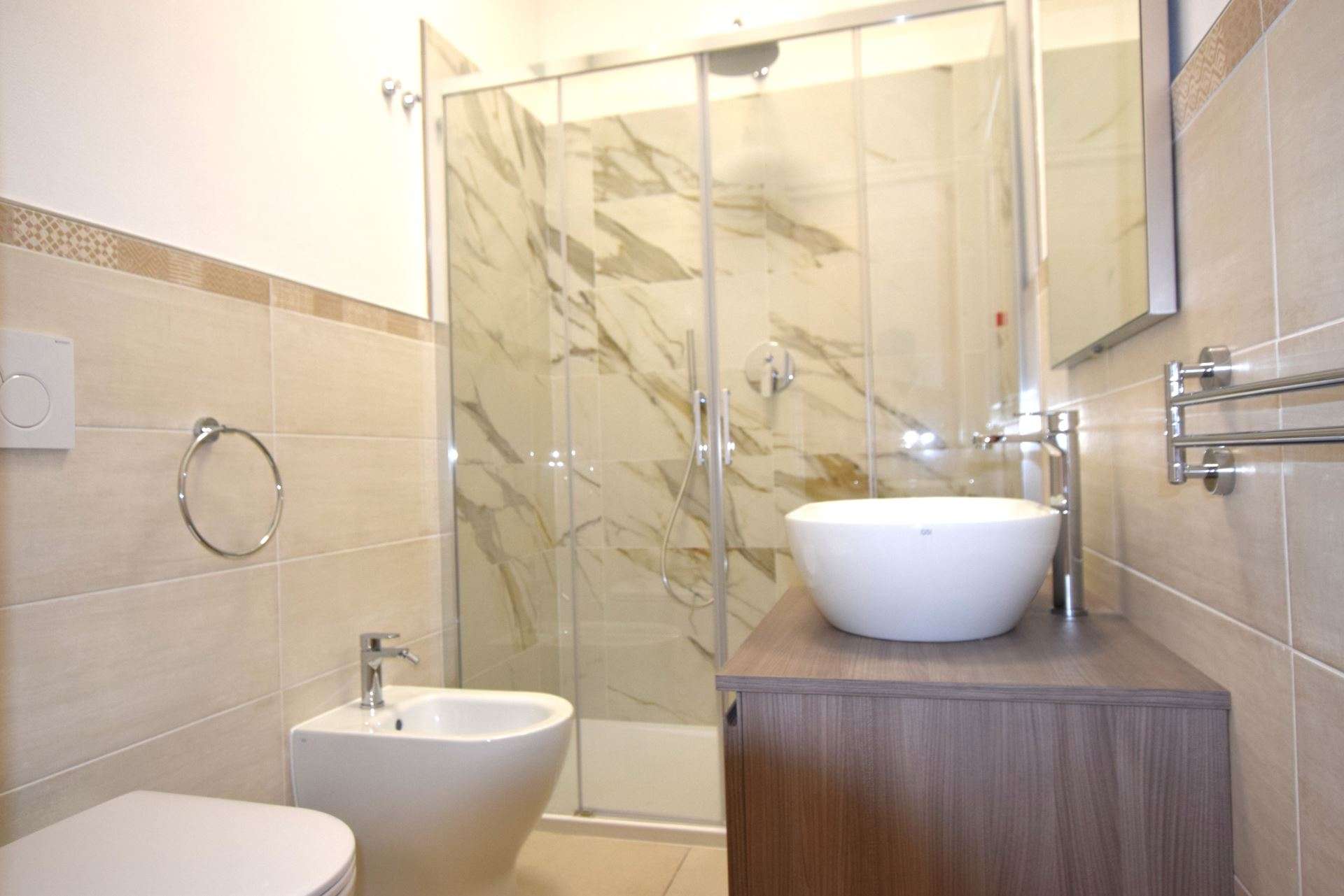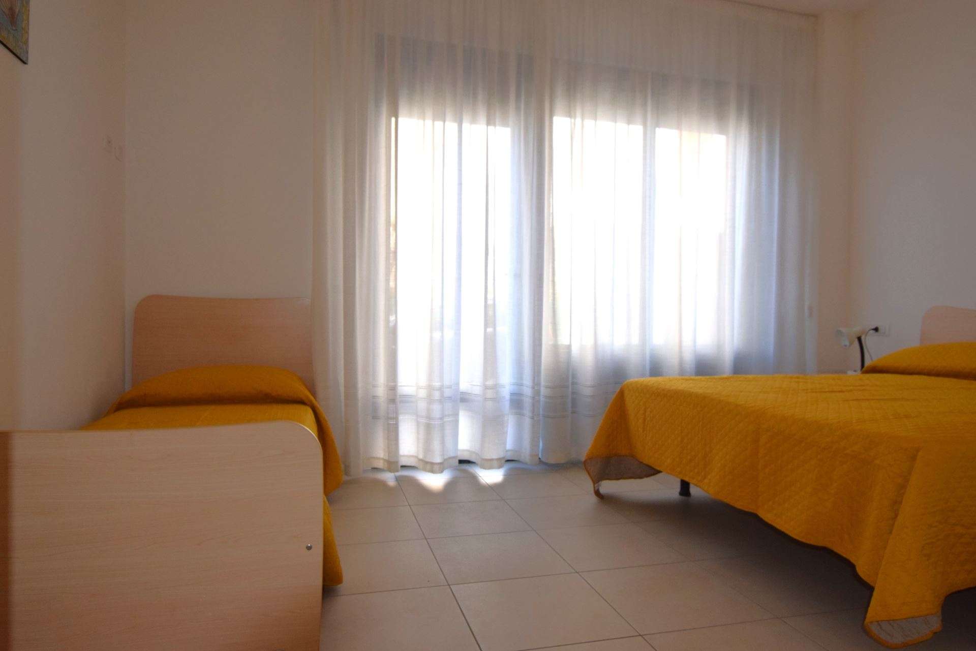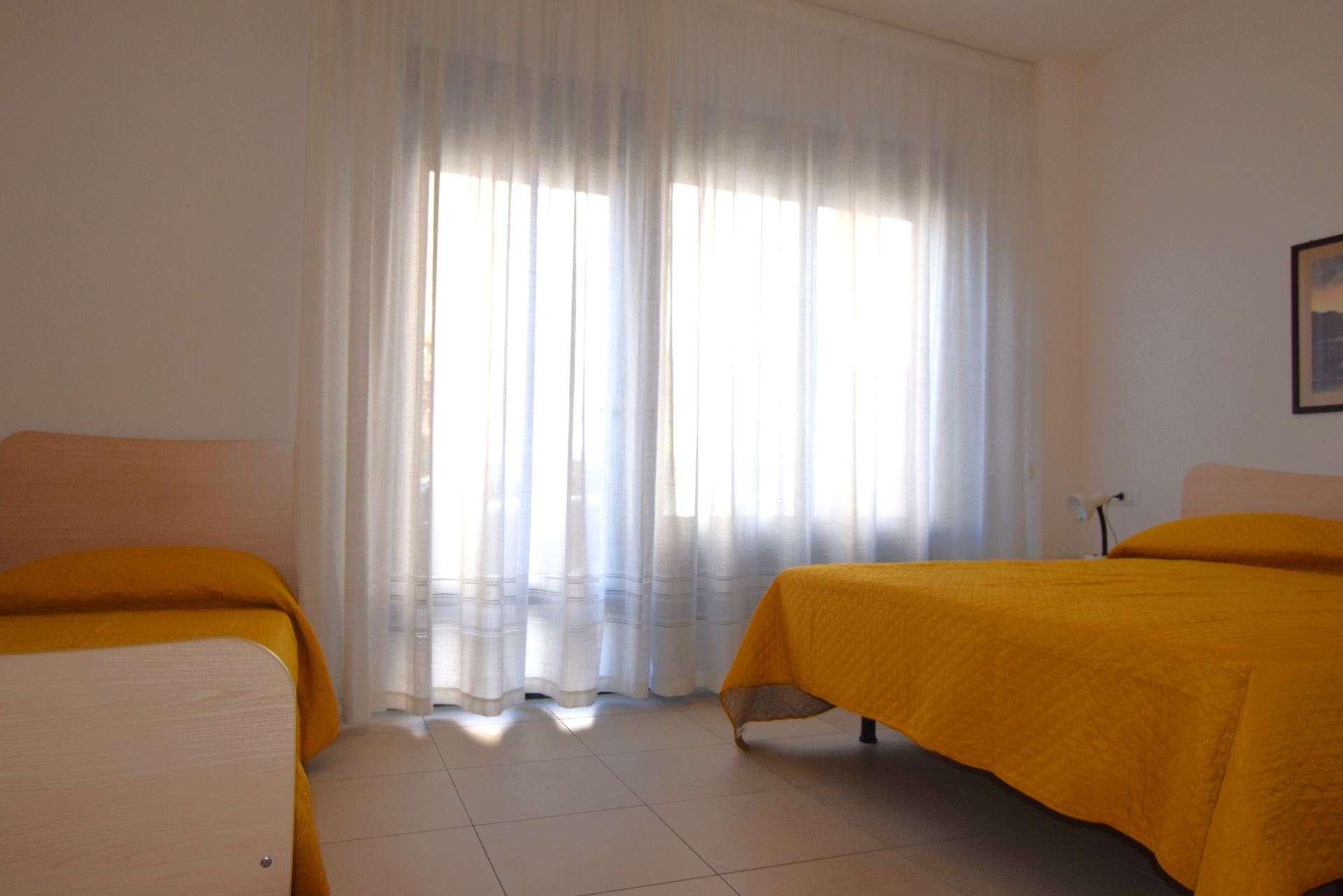 Ground floor apartment, consisting of living room with kitchenette and double sofa bed (twin beds), double bedroom and single bed, bathroom with shower. It has TV, air conditioning, outdoor area equipped with table and chairs, reserved parking space about 300 meters away. The apartment is within the limited traffic area which can be accessed only on the day of arrival and departure. Pets allowed (small size with supplement). Bed linen and towels not included.