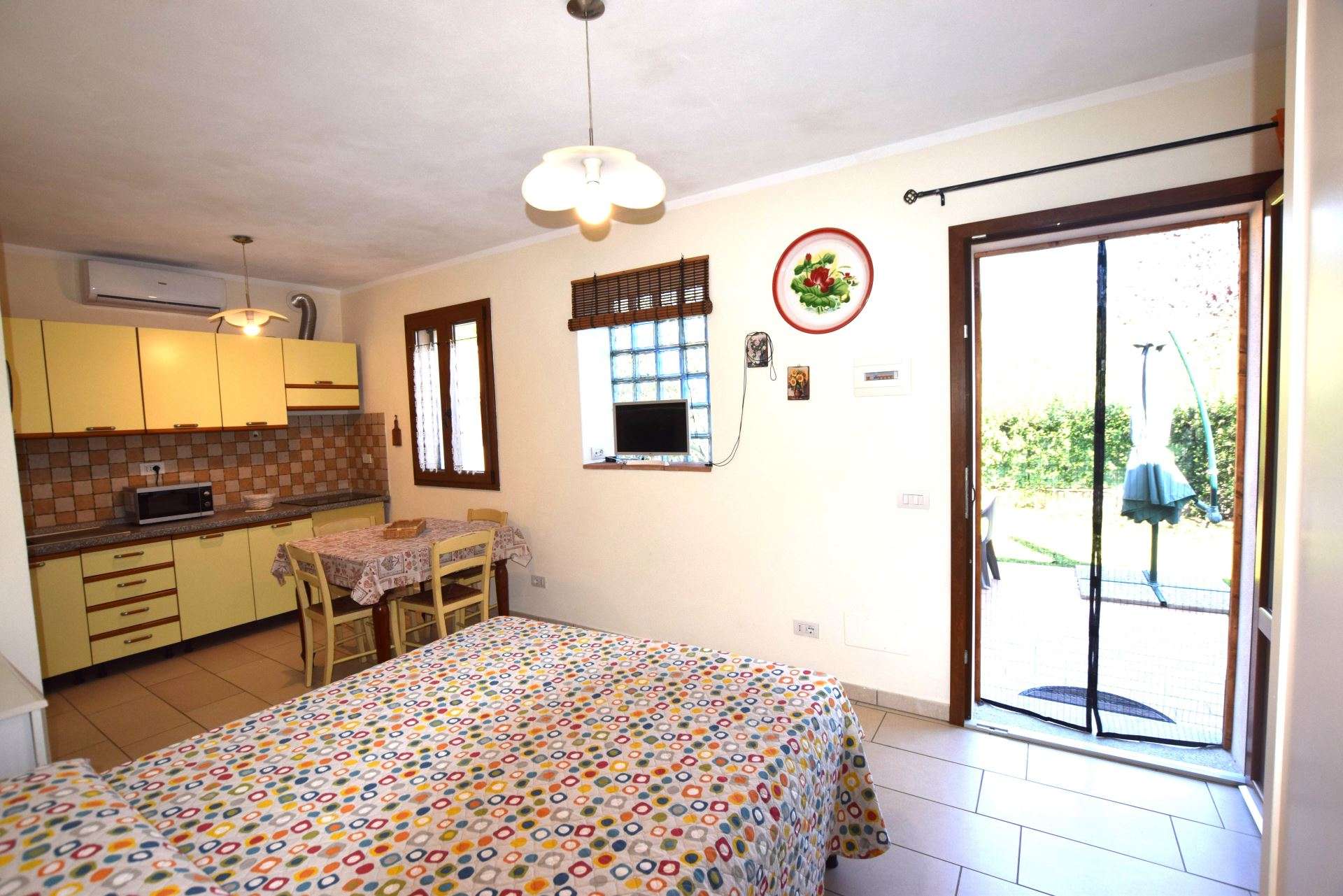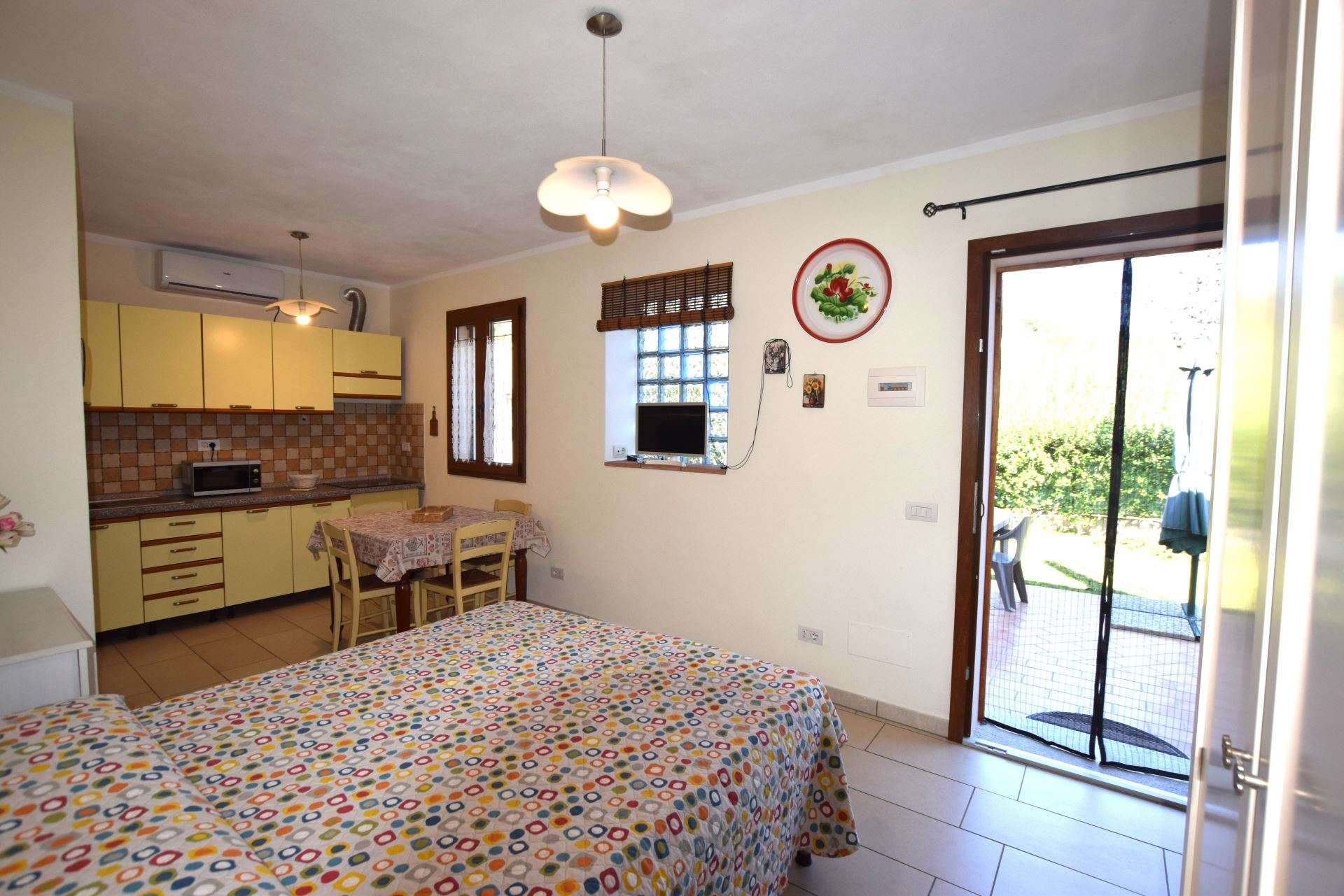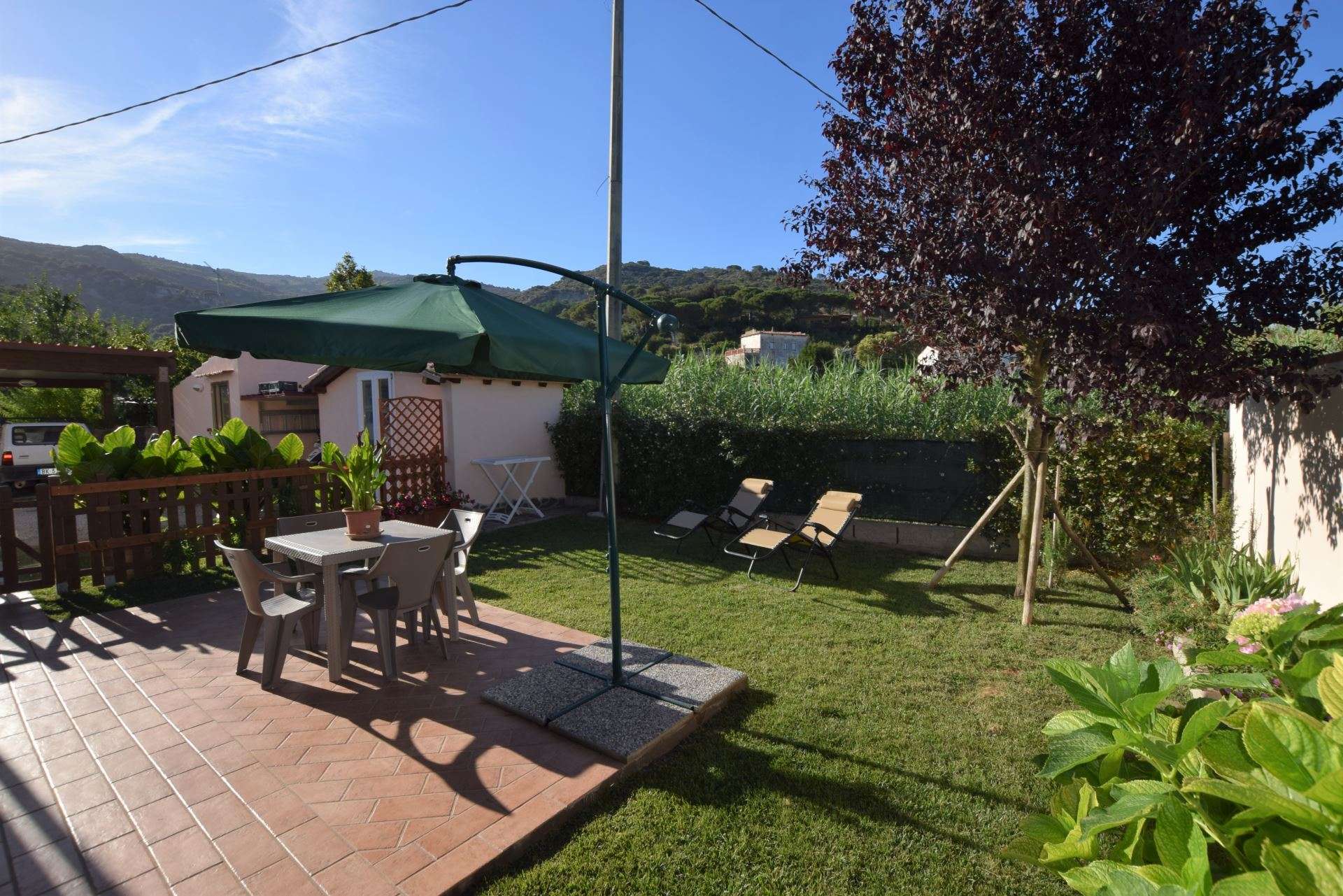 Located in a quiet area just a few minutes from Marina di Campo, a nice newly renovated apartment located on the ground floor of a multi-family building. The apartment consists of a living room with sofa bed, kitchenette with induction hob, double bedroom, bathroom with shower. It has TV, microwave, air conditioning (with supplement), parking space. Fenced outdoor area equipped for outdoor dining. Pets allowed on request. Linen not available. Double room under set up.