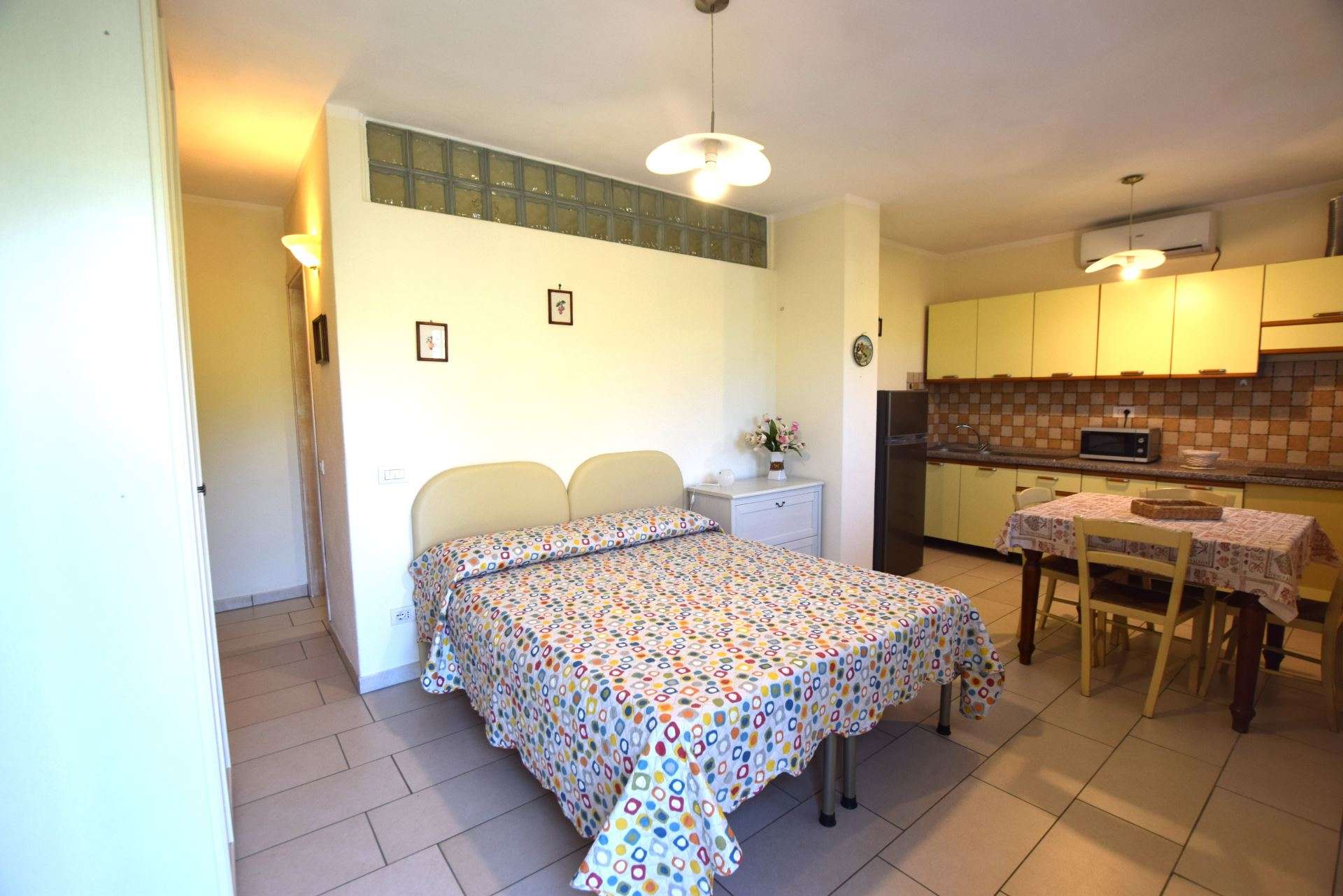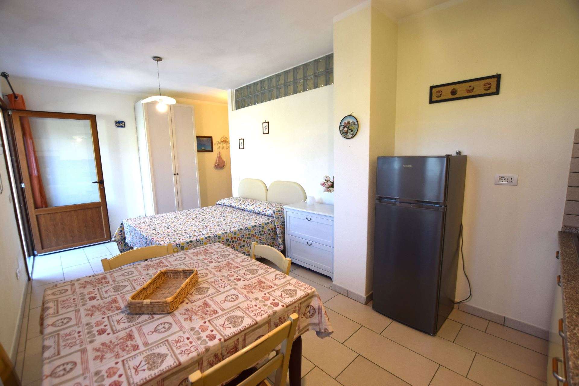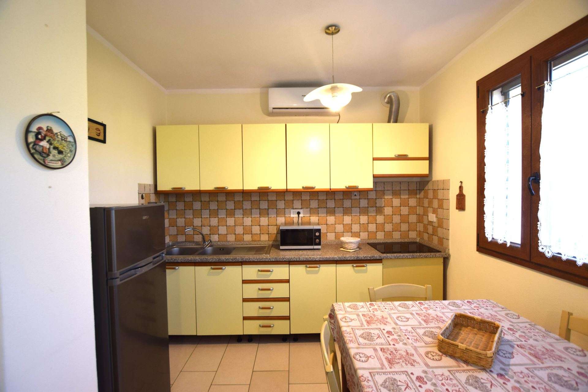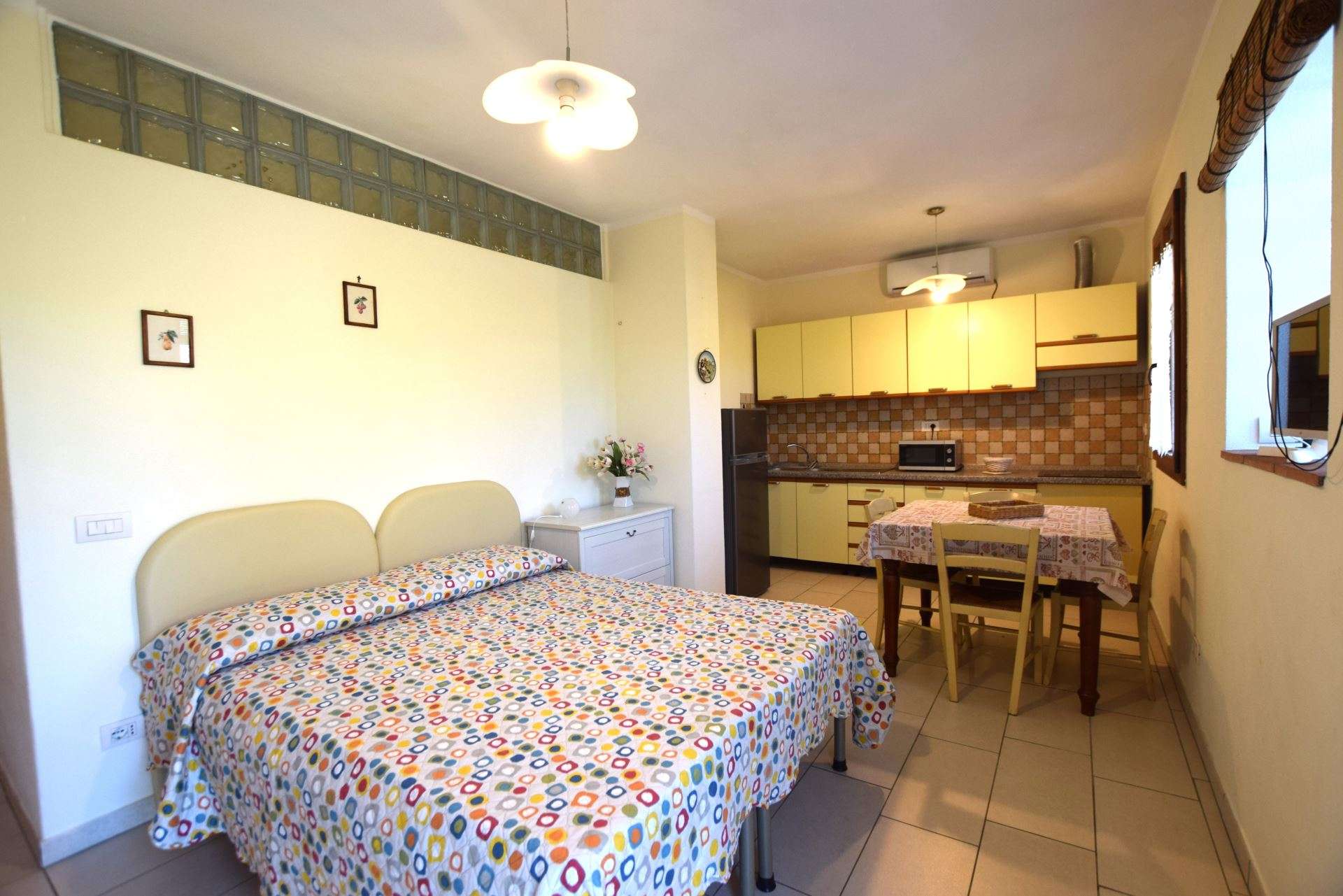 Located in a quiet area just a few minutes from Marina di Campo, a nice newly renovated apartment located on the ground floor of a multi-family building. The apartment consists of a living room with sofa bed, kitchenette with induction hob, double bedroom, bathroom with shower. It has TV, microwave, air conditioning (with supplement), parking space. Fenced outdoor area equipped for outdoor dining. Pets allowed on request. Linen not available. Double room under set up.