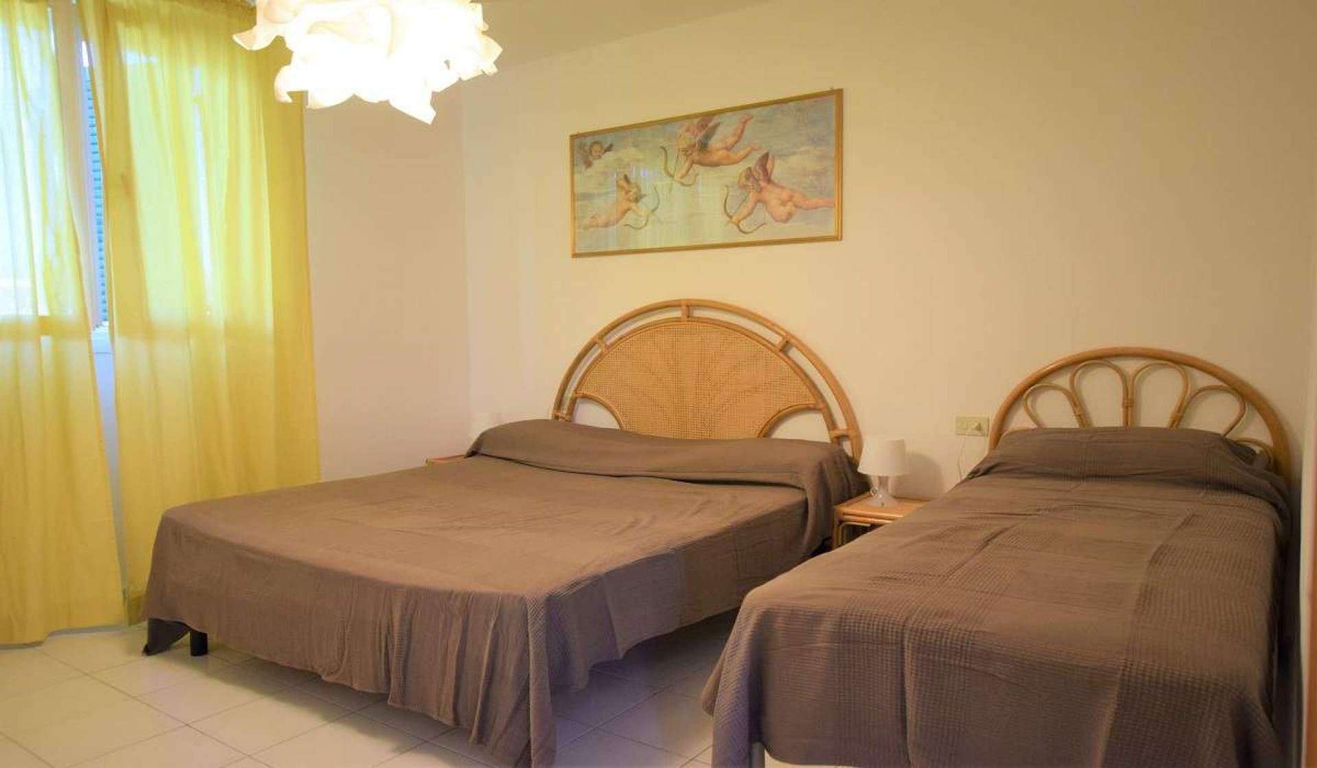 Charming and comfortable apartment on the first floor in a small residential building near the sea and center. It consists of living room with kitchenette with induction hob and double sofa bed, bedroom with double bed and 3rd single bed, bathroom with shower. Terrace with table and chairs shaded with electric curtains. At your disposal TV, wi-fi, washing machine, parking, air conditioned. Pets Allowed with extracharge.Bed linen and towels not included.