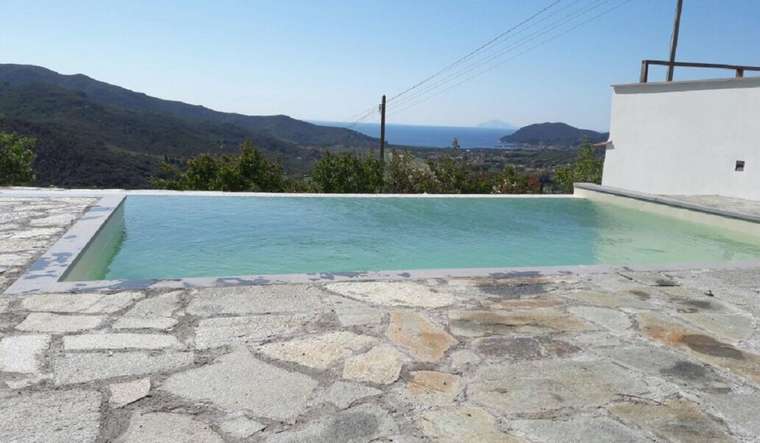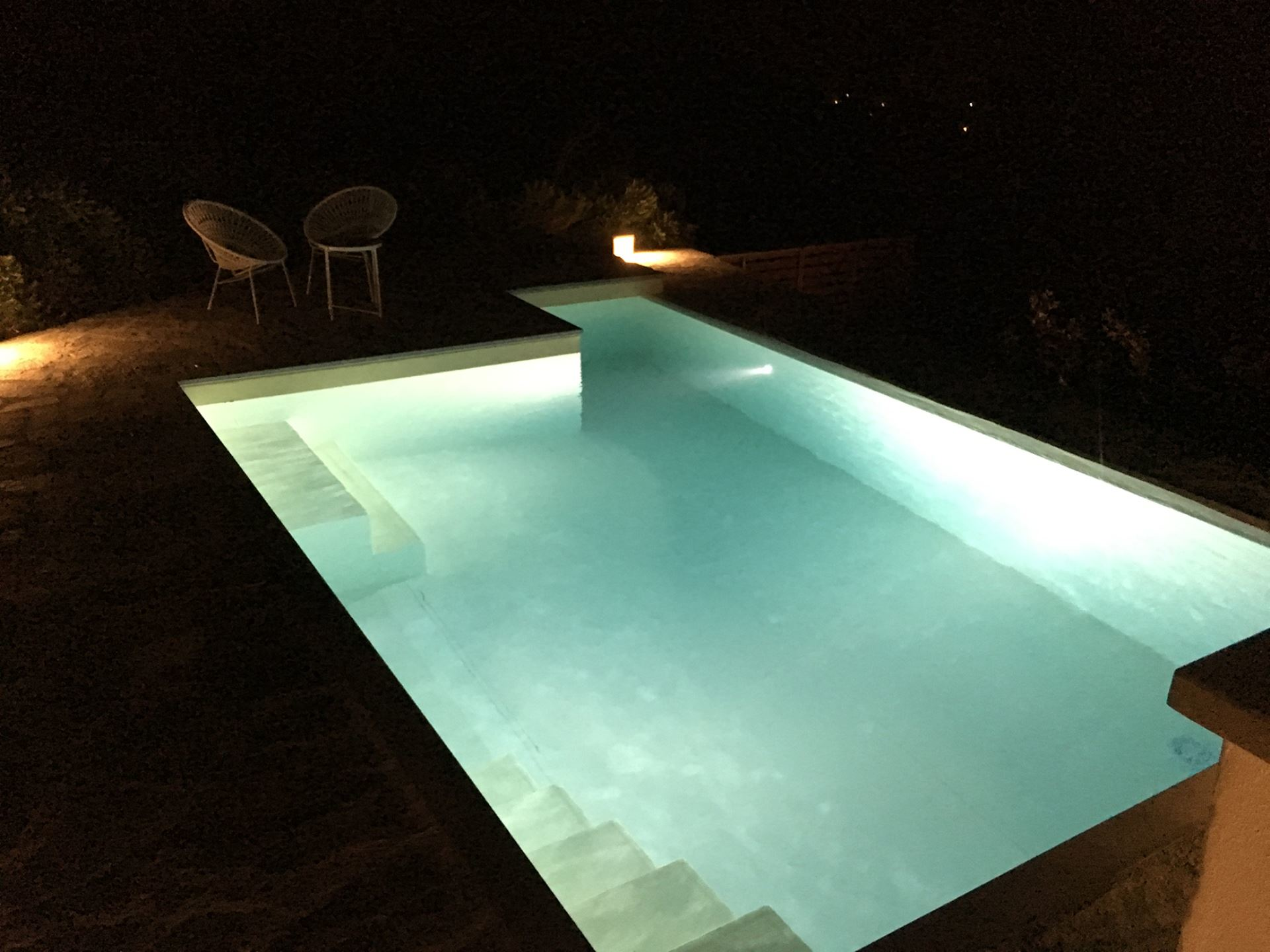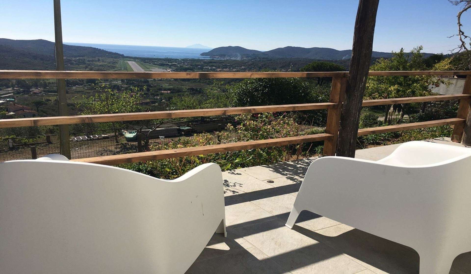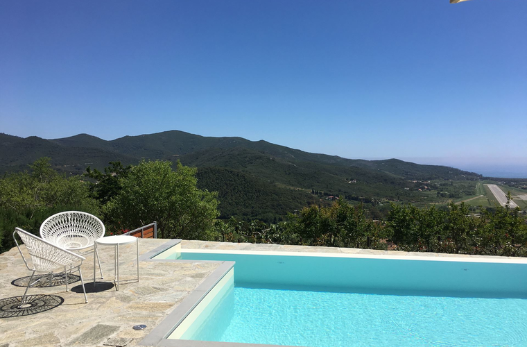 Elegant apartment free on three sides, located on the ground floor of a farmhouse located on the hills of Marina di Campo. Composed of living room with kitchenette equipped with fridge, oven, microwave, double bedroom with bathroom which can also be accessed from the living room (double door), double bedroom with en suite bathroom. From all the rooms through the French windows you can access the large panoramic terrace overlooking the Gulf of Marina di Campo equipped with table and chairs, sofas. The apartment has digital terrestrial TV, wi-fi, air conditioning, washing machine. On the lower floor with respect to the exclusive garden terrace, the property includes a private swimming pool (6mtx4mt) available from 1st June to 30th September, barbecue, parking space. Animals are not allowed. Linen not included.
